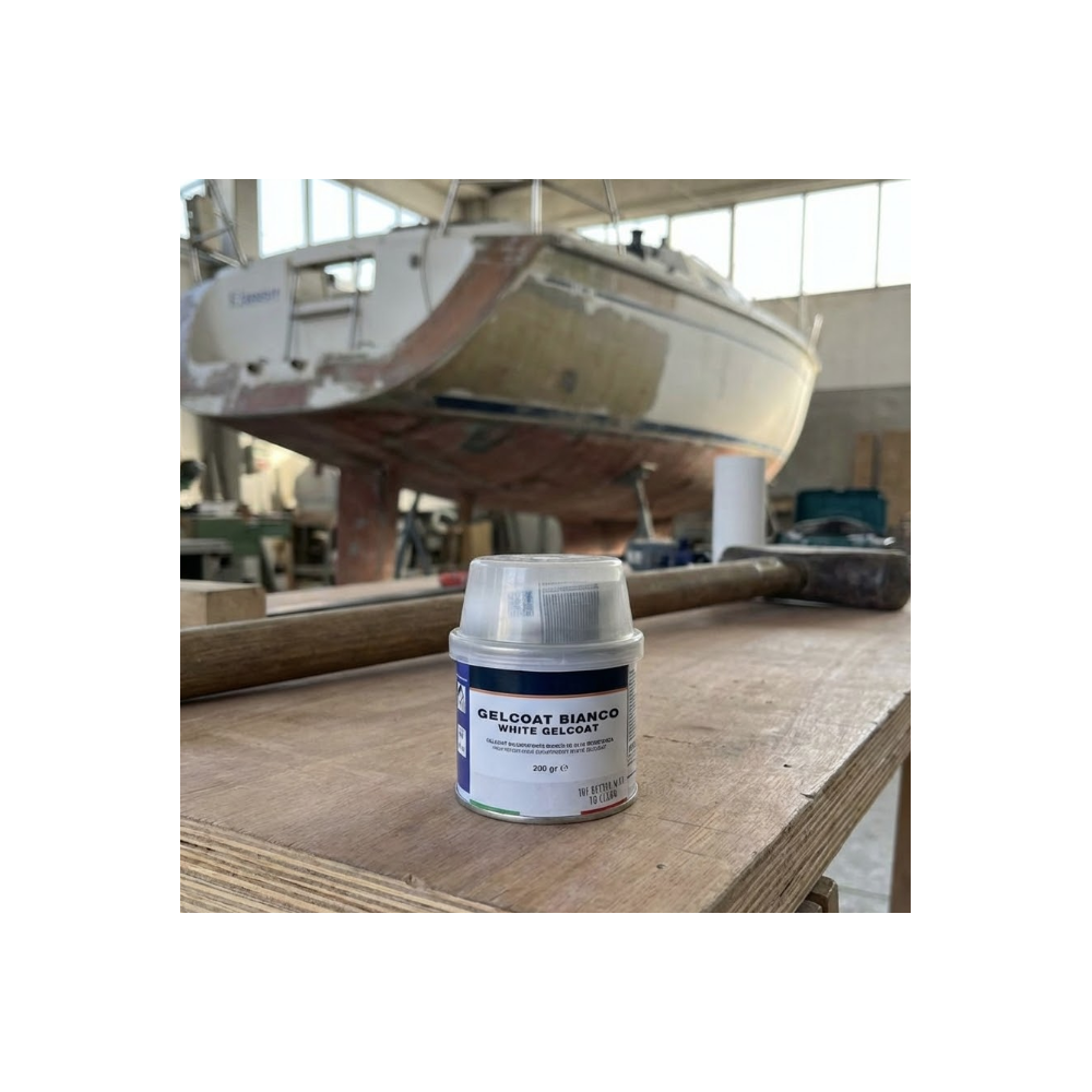 Il s'utilise comme un mastic spatule normal et le résultat final est une finition blanche brillante qui restaure la surface originale du gel-coat ébréché, écaillé ou bosselé. Il peut être repeint.