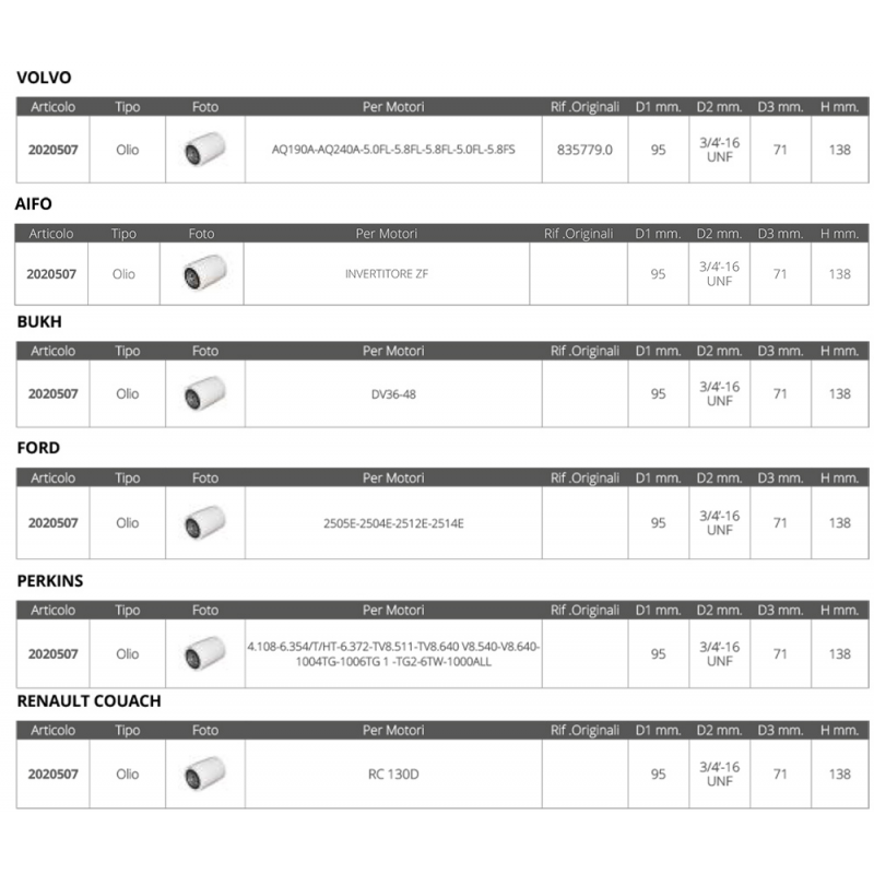 Filtre à huile multimarque Aifo-Lombardini BUKH