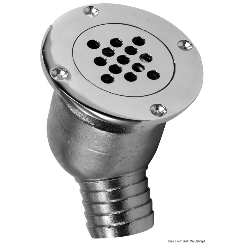 Fabriqué en acier inoxydable 316; avec système anti-retour grâce à une bille interne qui bloque tout reflux éventuel. Grille amovible pour le nettoyage.