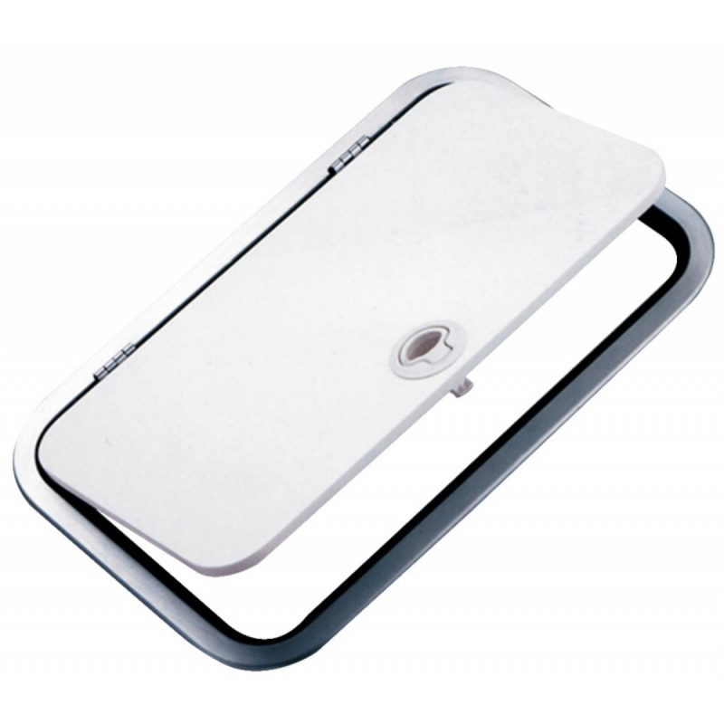 Avec charnières en acier inoxydable et fermeture à pression avec coins arrondis avec courbure R50.