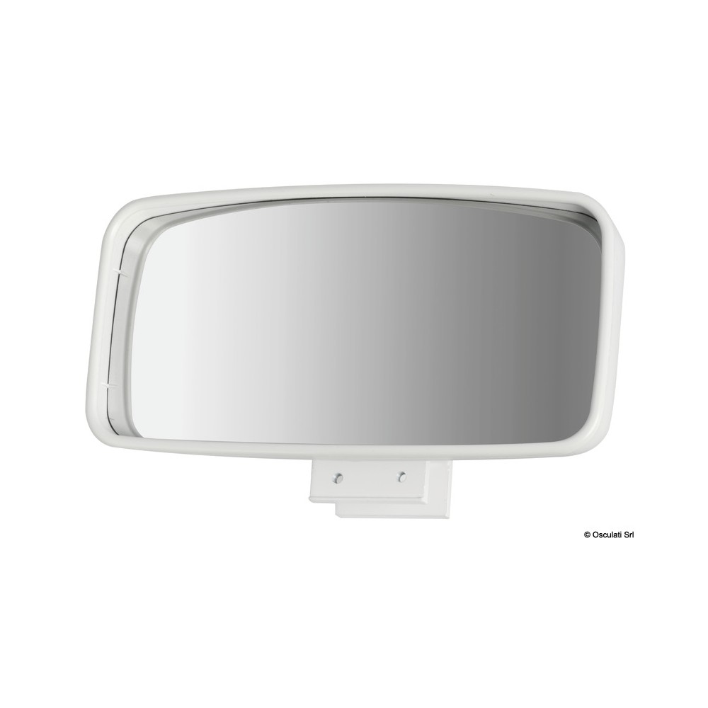 Conforme aux normes Ri.Na avec déclaration d'inspection n° 290/88 du 18/04/1988. Boîtier en ABS blanc haute résistance, partie réfléchissante en verre arrondi pour une vision panoramique. Visibilité parfaite et argenture garantie dans le temps. Equipé d'une base en acier inoxydable AISI 316 pour le montage sur le tableau de bord et d'une base en aluminium laqué pour le montage sur le cadre du pare-brise. Articulation à rotule arrière pour un réglage optimal. Le meilleur miroir actuellement disponible sur le marché.