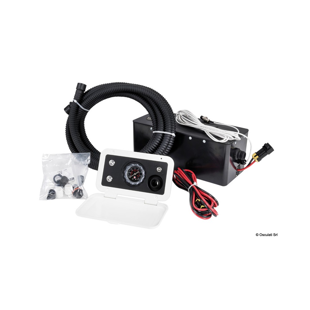 Le tuyau de 5 m et les câbles de raccordement entre la pompe et le panneau sont inclus. Depuis le panneau de commande, équipé d'une buse de gonflage, vous pouvez sélectionner la fonction (gonflage/dégonflage) et la pression souhaitées. Il suffit de connecter le tuyau de gonflage au panneau de commande et l'autre extrémité au gonflable, puis d'appuyer sur le bouton ON pour démarrer le système de gonflage. La pompe à distance réduit considérablement le bruit pendant le gonflage. Cette pompe haute performance permet un gonflage très rapide et une pression très élevée. Convient aux annexes, semi-rigides, SUP, etc.