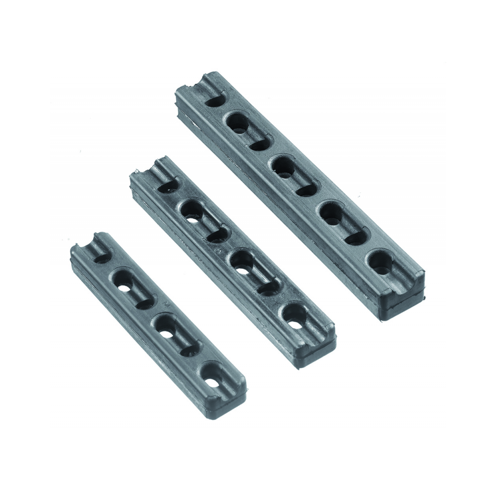 Amortisseur d'amarrage en caoutchouc. Dimensions mm longueur 220, largeur 40, hauteur 33, trou Ø mm.16.