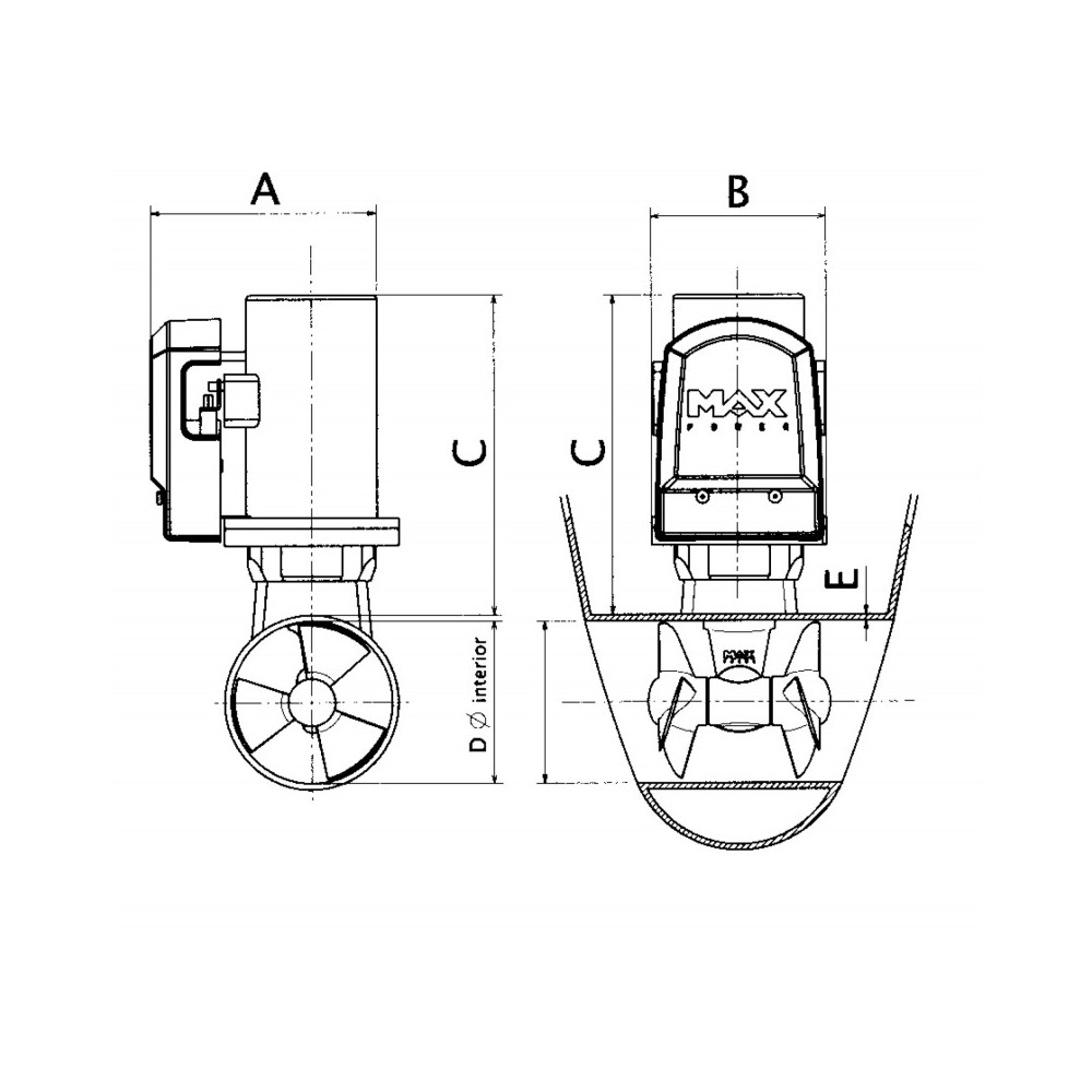 Pour une installation complète et correcte, vous aurez besoin de : panneau de contrôle, tunnel, fusible, porte-fusible et isolateur électrique pour les batteries, déjà complet avec le relais du moteur. Idéal pour les bateaux de 6 à 11 m. 1 Hélice, Poussée 63 kg, Puissance 4,4 Kw/5,9 Hp, 24V, Tunnel Ø mm. 185, Poids, 14.8 Kg.