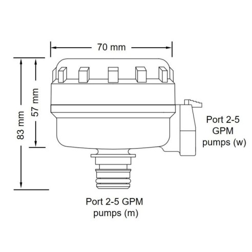 Filtre Pumpgard 40 mesh (ouvertures d'environ 0,4 mm), conception à 90°, raccord rapide entrée (f) x sortie (m) pour pompes Jabsco/Flojet de 2 à 5 GPM. Pression maximale : 5 bar (70 PSI). Dimensions : longueur env. 70 mm (orifice inclus) / largeur env. 70 mm / hauteur env. 83 mm