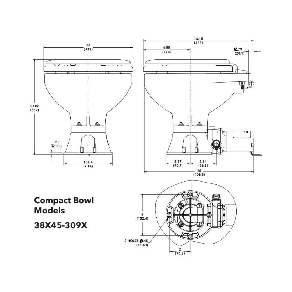 Jabsco 38245-3092 - WC Quiet Flush E2 Compact - eau salée 12 V